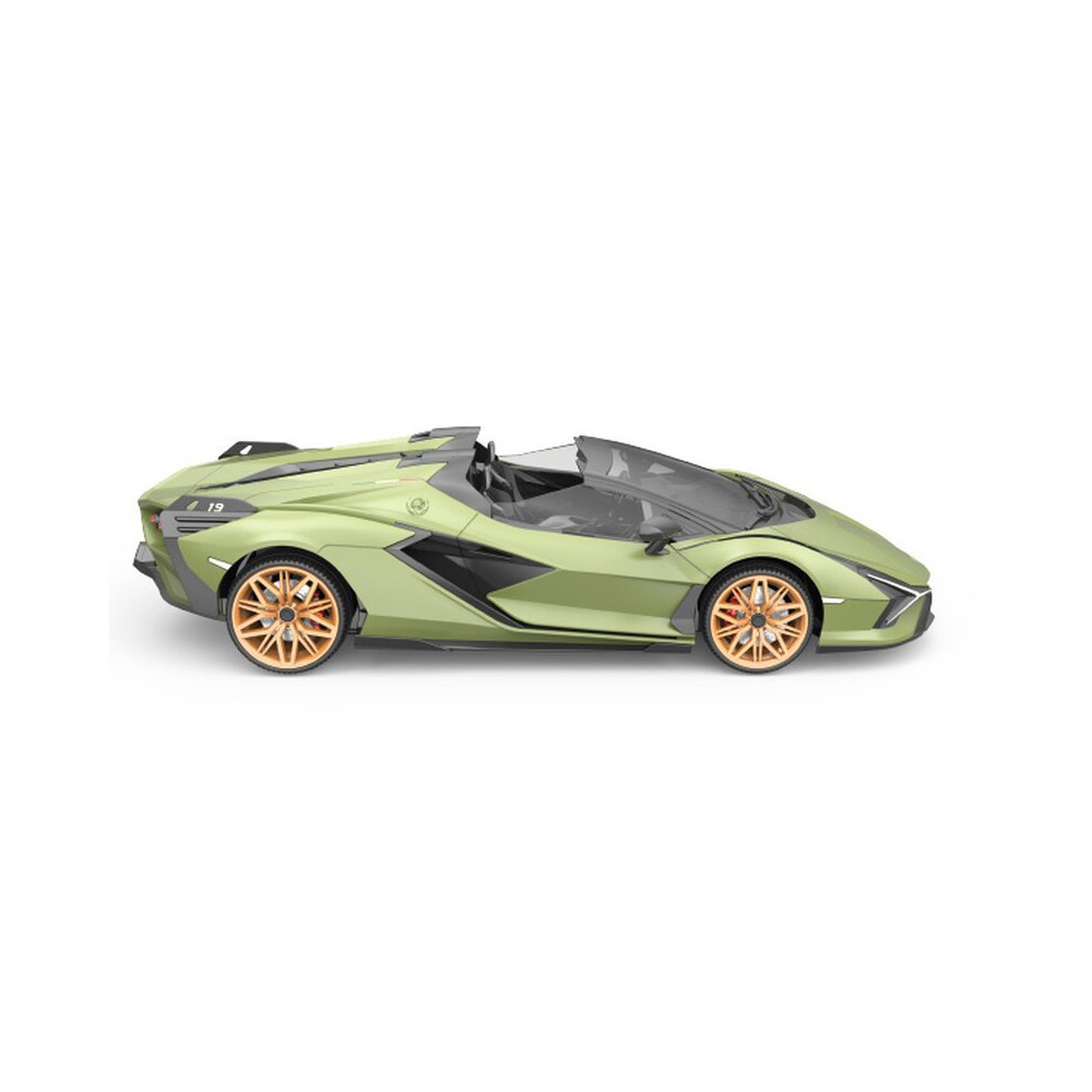 RE.EL Toys Lamborghini Sian 1:12 olivově zelená metalíza proporcionální jízda, 100% RTR, LED, ovládání pro praváky/leváky.