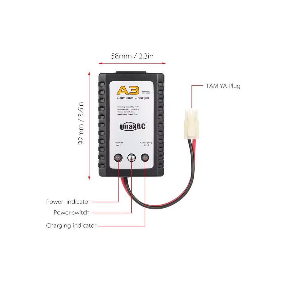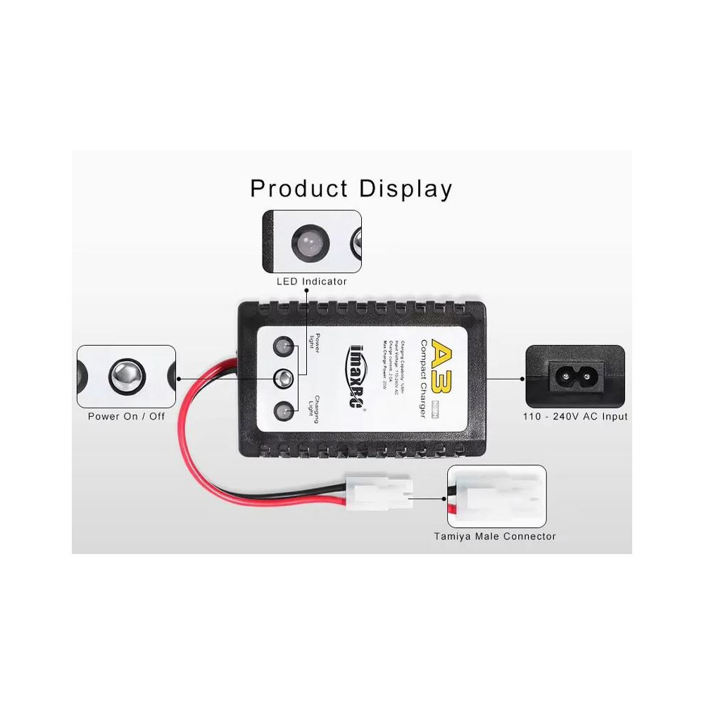 Univerzální nabíječka IMAX A3 je spolehlivé řešení pro NiMH/NiCd akumulátory s napětím 6–9,6 V. Nabízí jednoduché použití, LED signalizaci, nabíjecí proud až 2 A a Tamiya konektor. Díky automatickému řízení nabíjení a kompaktním rozměrům je ideální volbou pro začátečníky i pokročilé.